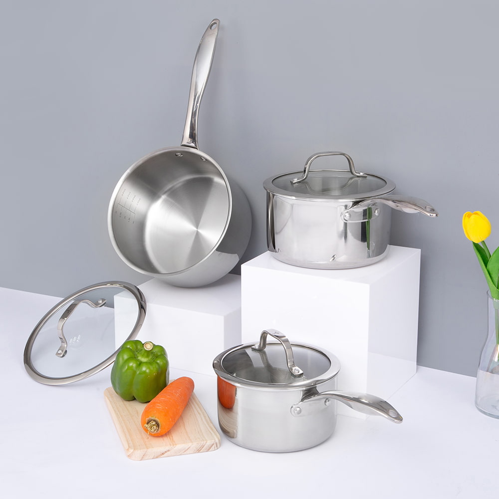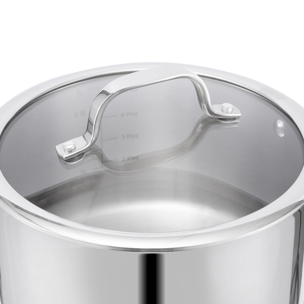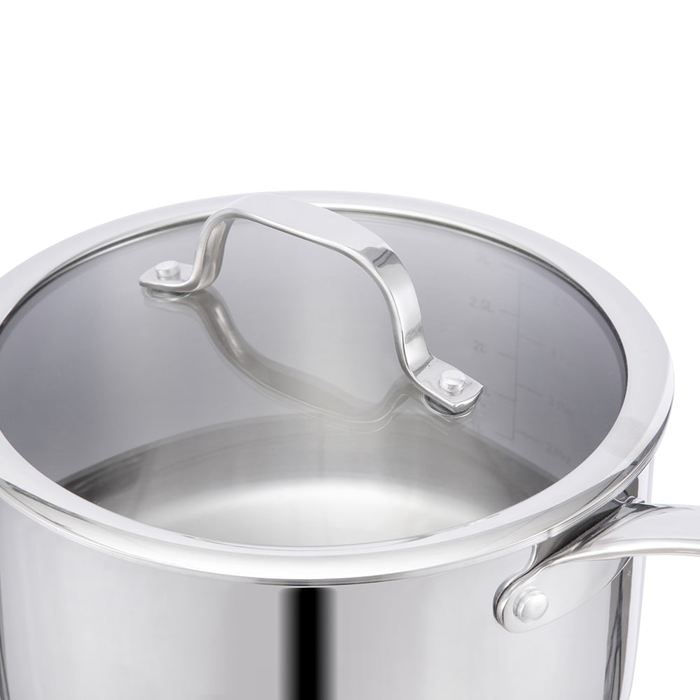 Con la pentola JY Cookware serie SN da 20 cm, 4,5 L in acciaio inox con fondo a tre strati e coperchio in vetro temperato, i tuoi piatti saranno ancora più deliziosi!