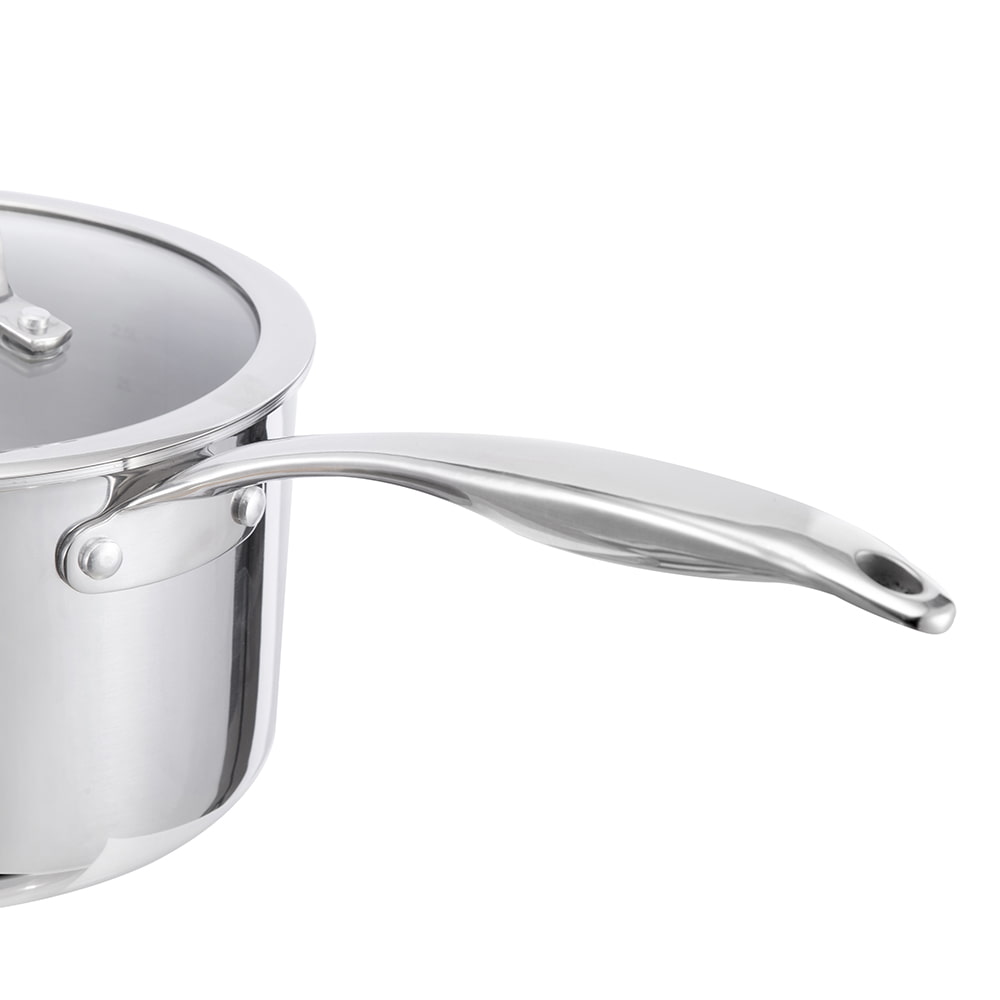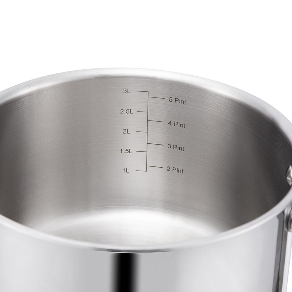 È realizzato in acciaio inossidabile con la moderna tecnologia del fondo a triplo strato (acciaio inossidabile alluminio acciaio inossidabile), che distribuisce il calore in modo uniforme, garantendo una cottura più rapida e mantenendo i cibi caldi più a lungo. Ha un diametro di 20 cm, una dimensione eccellente per vari compiti in cucina.